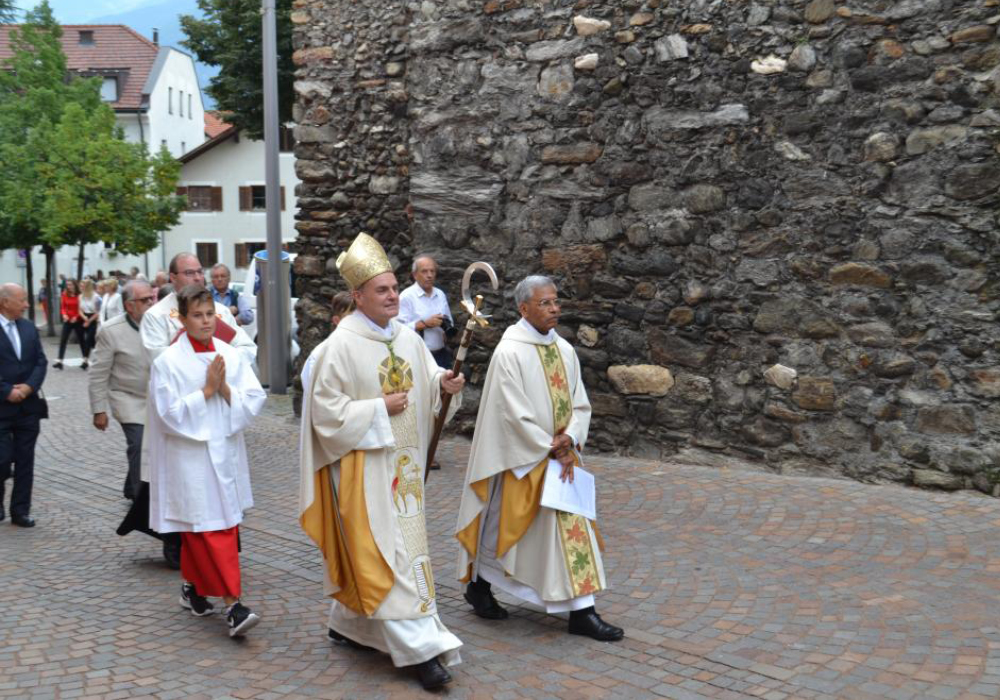 Am Sonntag, 25. August 2019, hat Bischof Ivo Muser bei einem feierlichen Gottesdienst Mathew Kozhuppakalam von den Missionaren des Hl. Franz von Sales, die seit Mai 2018 das Kapuzinerkloster in Schlanders beleben, zum Pfarradministrator und Dekan eingesetzt. Die rechtliche Vertretung der Pfarrei übernimmt der Kooperator Sebastian Egger. Pfarrgemeinderatspräsident Kurt Gufler und Bürgermeister Dieter Pinggera dankten dem nunmehrigen Altdekan für sein Wirken und für seine Leistungen, die sich lang wie eine Litanei anhörten. Dekan Mathew hält es mit dem Apostel Paulus, der zu den Philippern sagte: „Alles vermag ich durch den, der mich stärkt!“ Er meinte damit den göttlichen Vater und alle in den Pfarreien von Schlanders und Kortsch und im Dekanat.